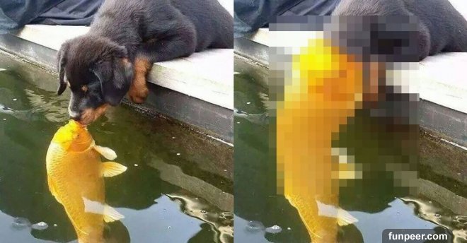 小魚池邊搶吻汪星人超浪漫? 啵啵的正爽下一秒出現這畫面......啊啊啊!網友崩潰暴動中