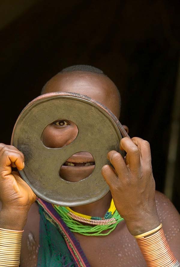 摩爾西族少女長到10多歲時,就會穿透下嘴唇,往嘴唇裡放盤子。所置盤子愈大,謂之最美,也可獲得更多的女兒出嫁時的彩禮。