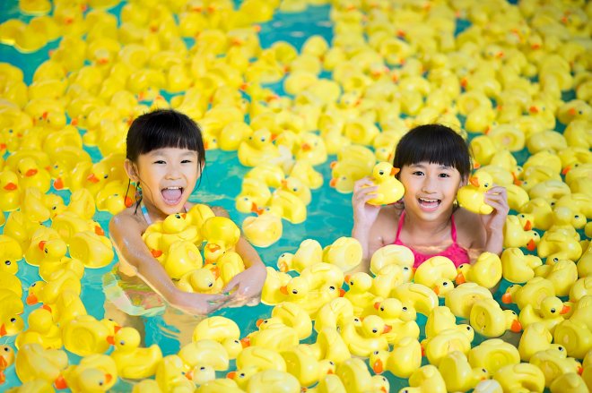 ▼今年暑假更推出「兒童水上電影院」,規劃在親子時段提供水上充氣沙發,大人小孩可以一起在室內泳池欣賞親子電影。