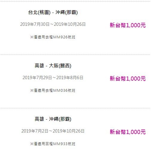 ▼不過購買機票時必須注意,出發日期、票價會依各航線而有所不同,一起來看看優惠航線的資訊吧: