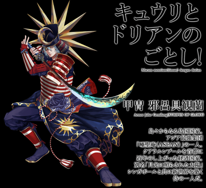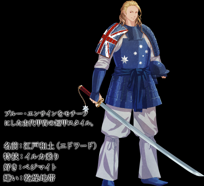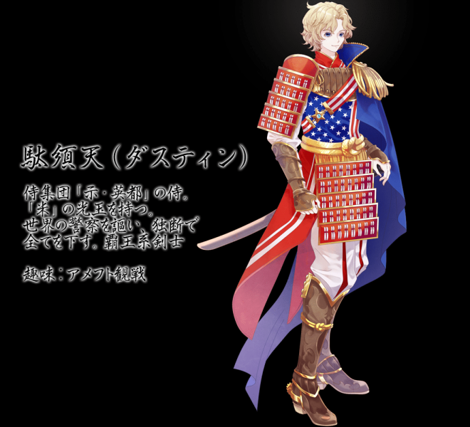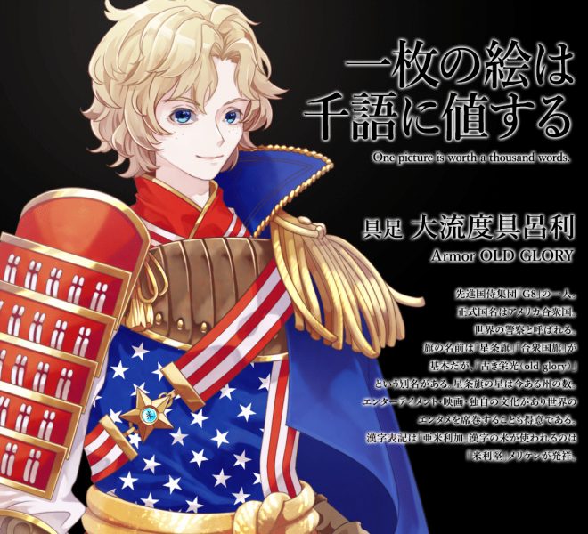 ▼美國國旗的形象完全是一個可愛的小正太,但可不要看他可愛就以為他好欺負,介紹中寫著他可是「霸王系劍士」!
