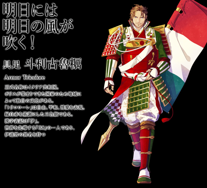 ▼義大利國旗:有著不羈的髮型和瀟灑的鬍渣,爽朗的笑容跟堅毅的眼神完全戳中大叔控的心~因為是32國國旗中唯一的鬍渣大叔角色,私心想要特別介紹他XD,接下來的國旗就請各位自己看囉!