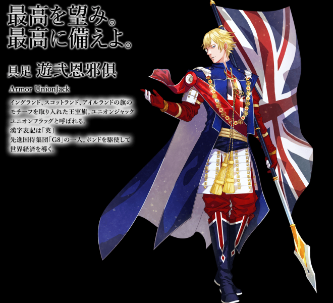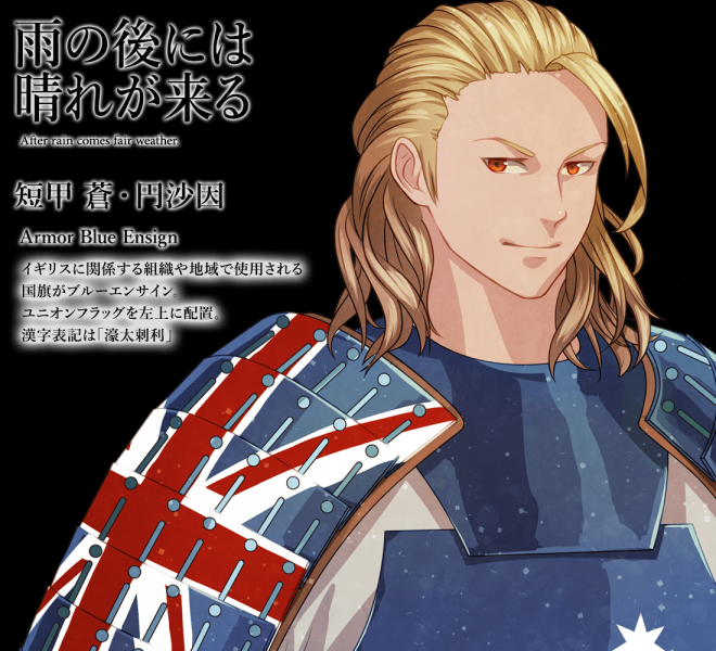 ▼英國國旗走的完全就是一個華麗無雙的路線,帶著單邊眼鏡很有英倫風老紳士的感覺。帶著三分邪氣、目空一切的眼神,跟略帶輕蔑微微上揚的嘴角,感覺就是一個超級S的鬼畜系大哥角色~