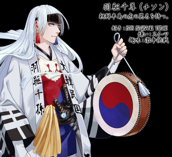 ▼而同為東亞國家的韓國國旗則是「朝鮮半島之虎」,一身白色大褂、內藏韓國太極旗配色,外表就跟韓國偶像團體一樣超美型!有趣的是韓國國旗本身竟然是個偶像宅,還是防彈少年團阿米們的一員!