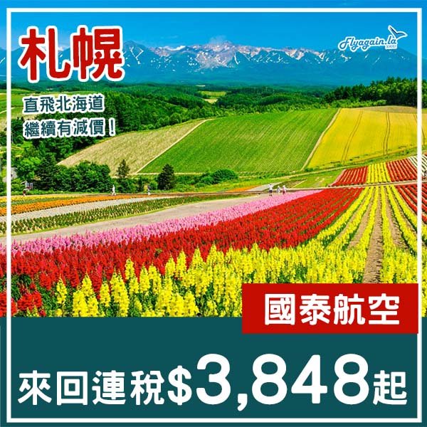 航空公司:香港快運航空(UO)*可自行選擇其他航空公司,價錢會相應調整